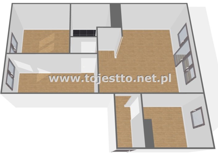 - wiatrołap, kuchnia, 4 pokoje, wc, łazienka, pomieszczenie gospodarcze