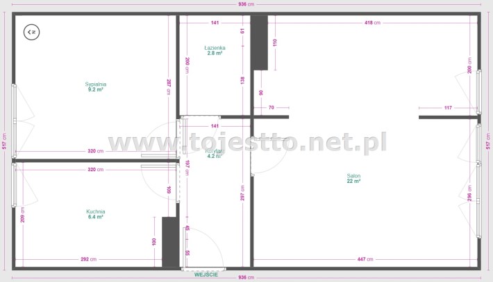 uwaga: dzięki rozkładowi mieszkania można zmienić układ pomieszczeń z tradycyjnego na nowoczesny czyli salon z aneksem kuchennym w miejscu obecnego salonu z wnęką sypialnianą. Taka zmiana układu pomieszczeń jest dobrym rozwiązaniem pozwalającym na wspólne, rodzinne spędzanie czasu przy posiłkach i różnych czynnościach. Dzięki takiej zmianie oprócz salonu z aneksem w mieszkaniu mogą być wydzielone niezależne dwie sypialnie.