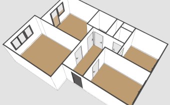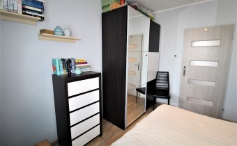 sypialnia mniejsza powierzchnia około 10,80m2, okna na stronę północną, jest miejsce na łóżko małżeńskie, tu również znajduje się duża szafa, ściany: gładź